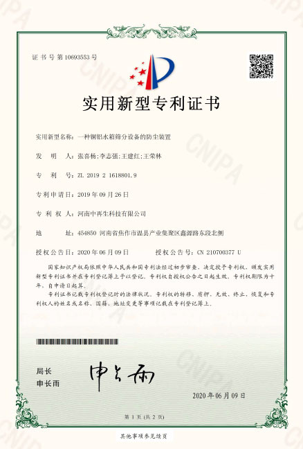 ZL2019216457104.一種銅鋁水箱破碎用振動篩分裝置